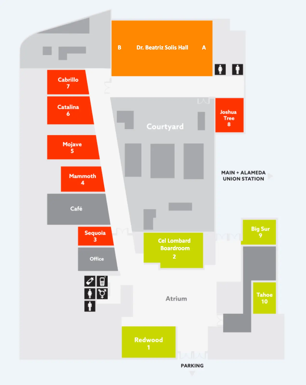 - Walk out of Union Station at Alameda Street exit. Turn right on the sidewalk that runs parallel to Alameda St. Walk 1-1/2 blocks north to The California Endowment’s front entrance.