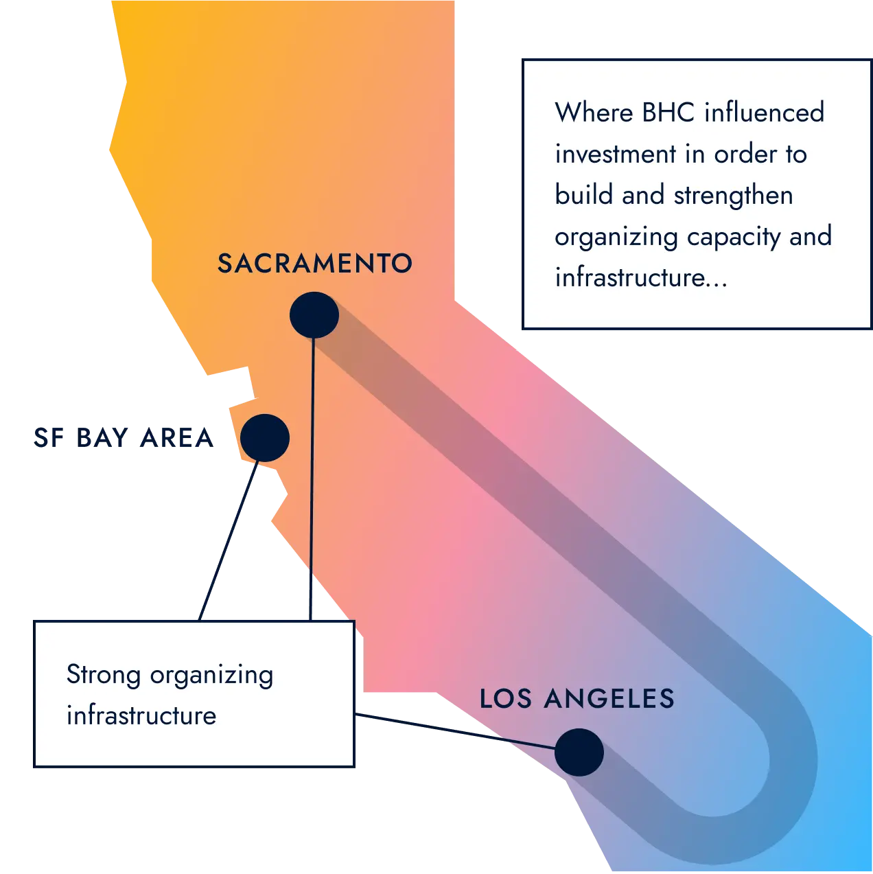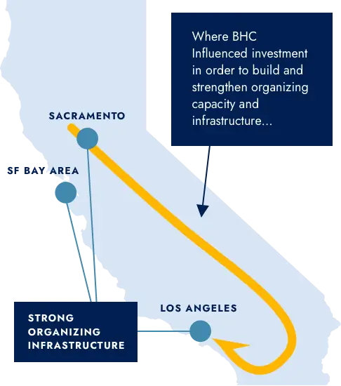 Over the course of the decade, BHC shifted and centered an organizing approach with grassroots community-based organiations as the leaders, architects, and drivers of a larger power-building movement and helped build an emerging ecosystem of organizations with diverse capacities, skills, and expertise – and with reach from local, to regional, to state levels – all of which are required to get the big goal of health and justice for all.